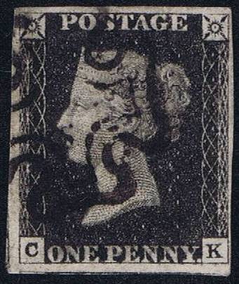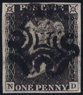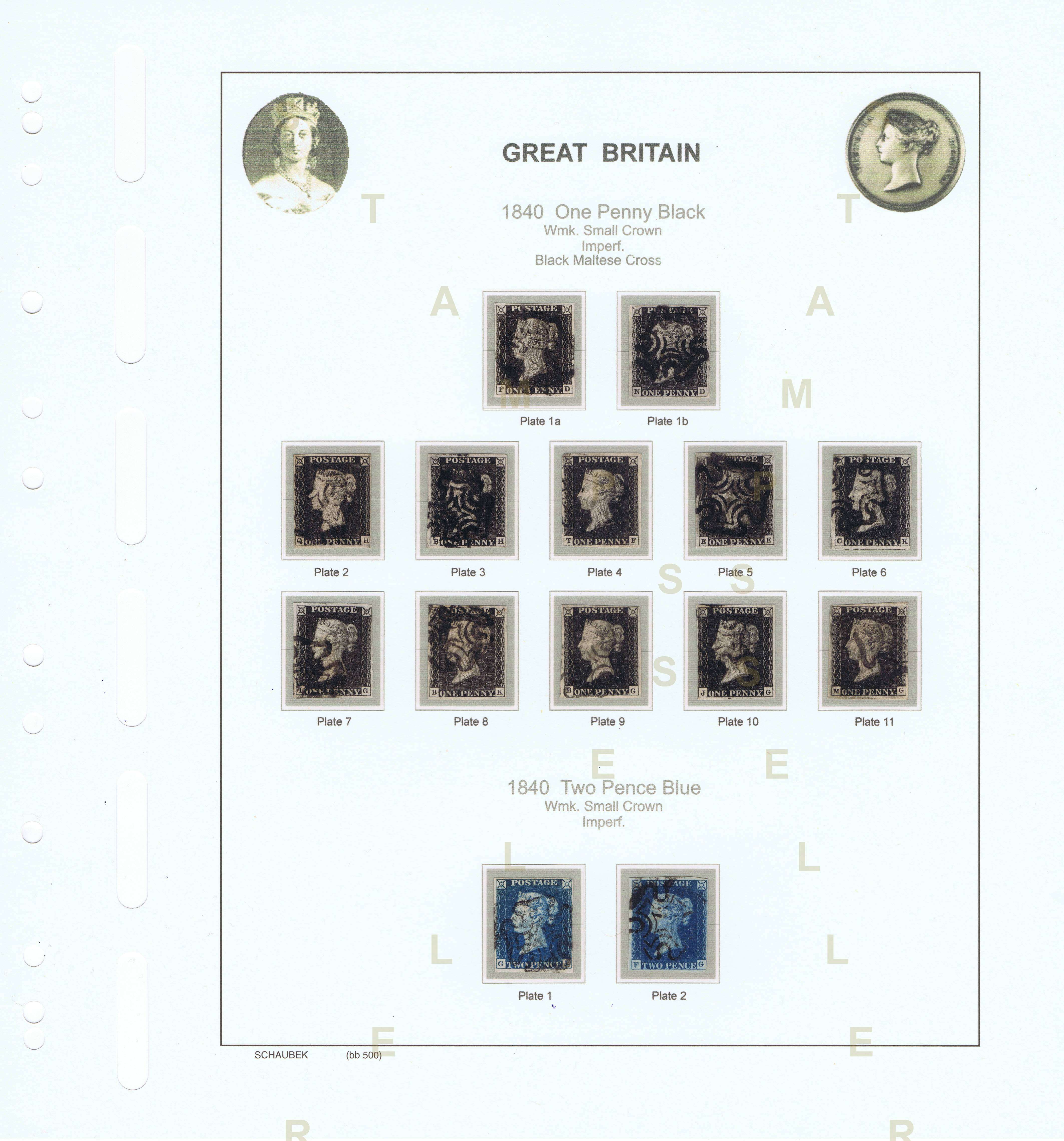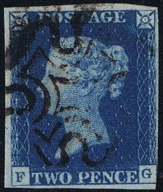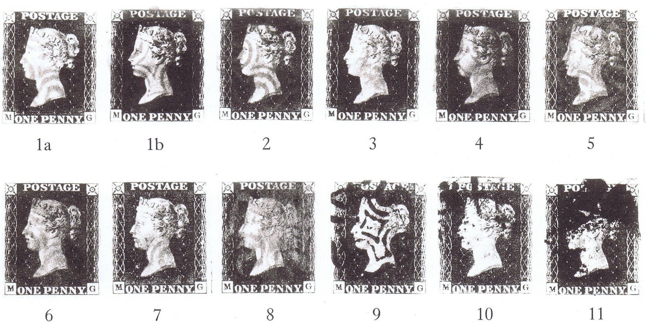 001S 1840 1d black PL 1-11, 2d blue PL 1-2 (black MC)
