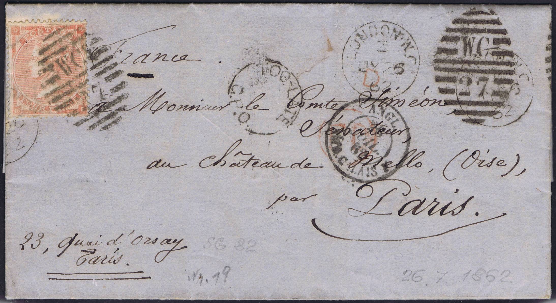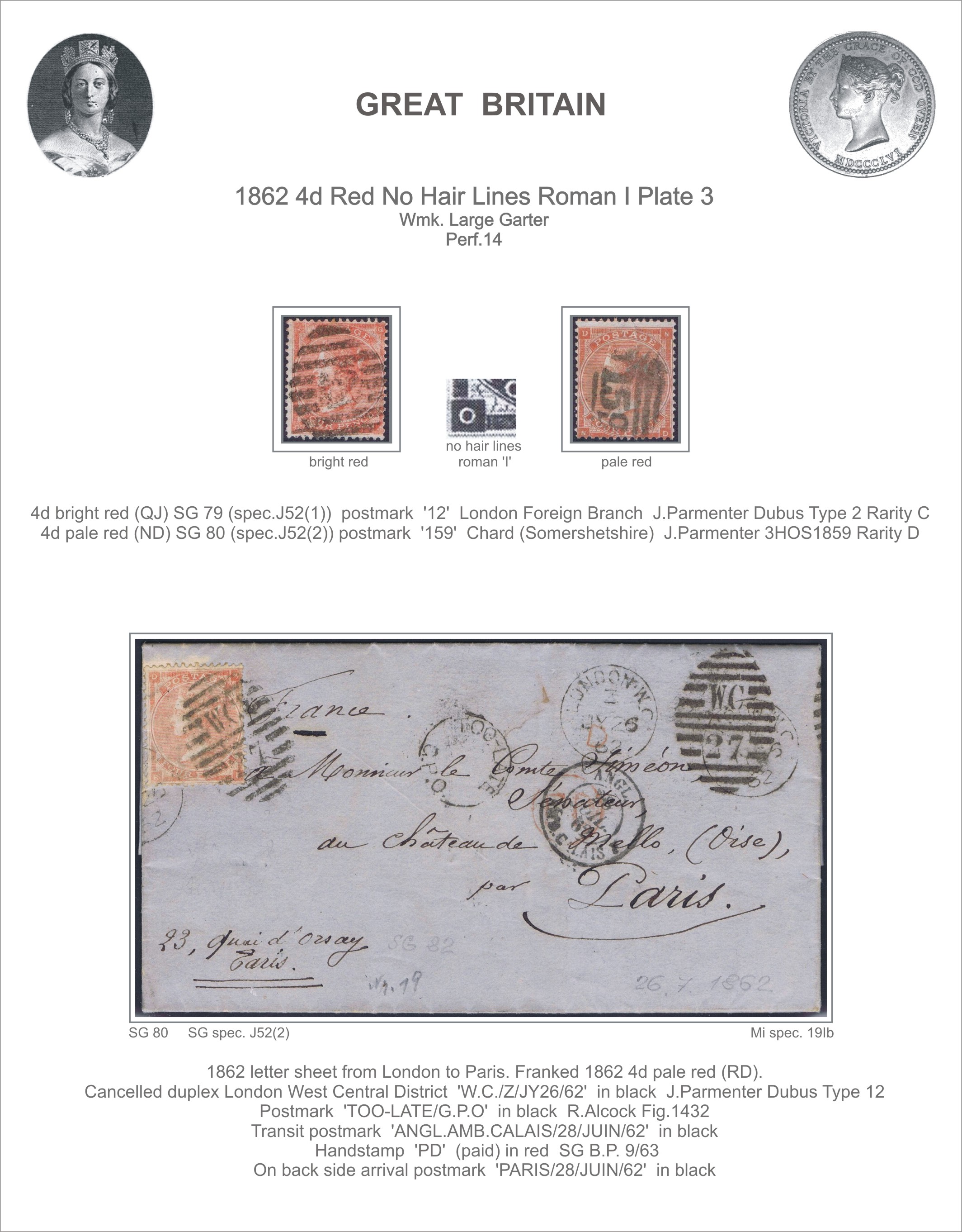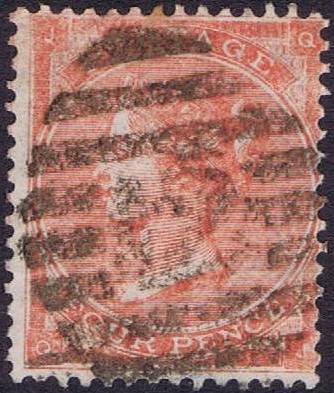 001S 1862 4d red PL3 wmk.LG (2 shades and letter)