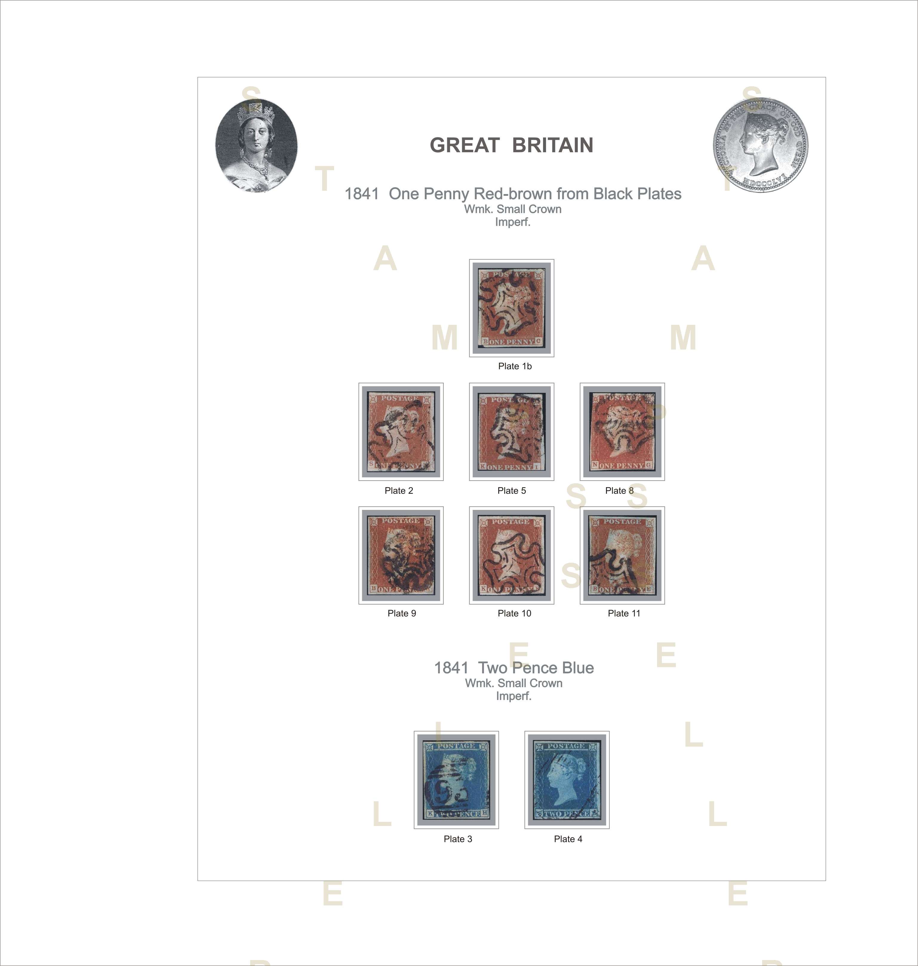 002D 1841 1d red-brown PL 1-11 (black plate) 2d PL 3-4