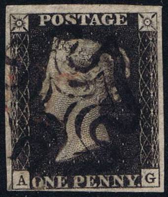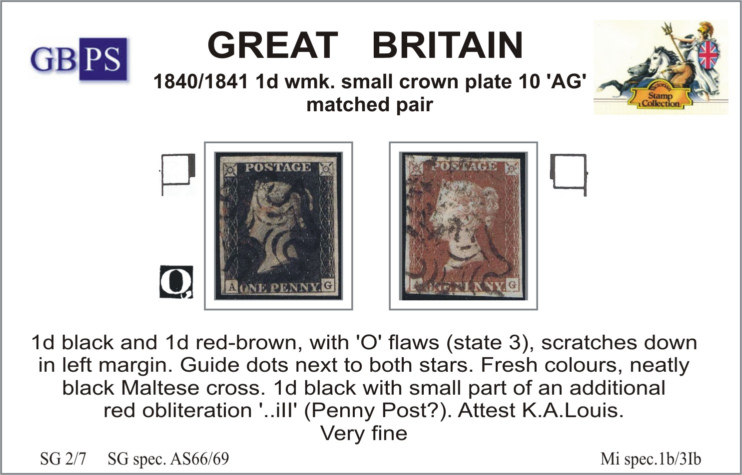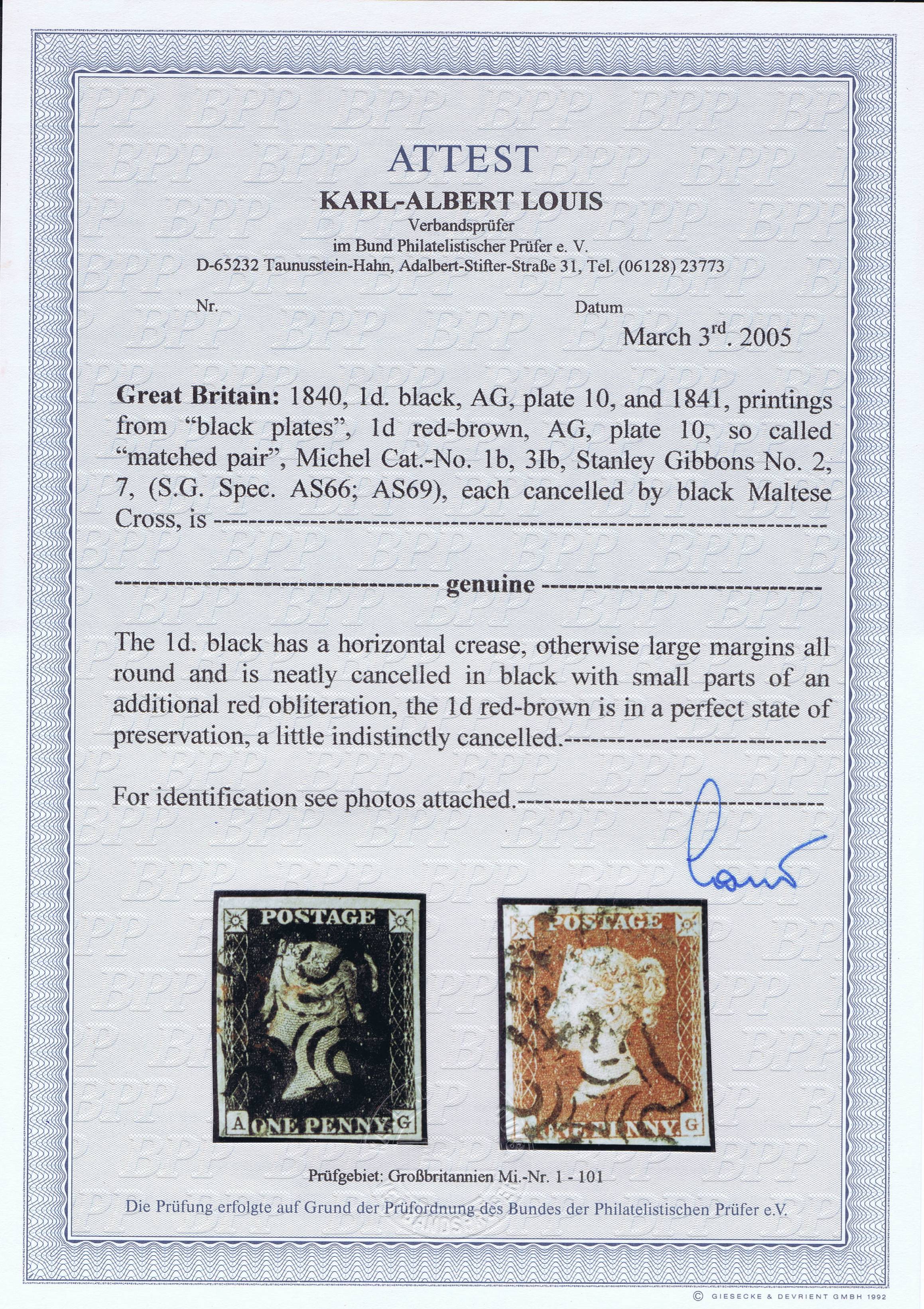 002M 1840-41 1d PL10 (AG) AS 66,AS 69 black-red (matched pair)