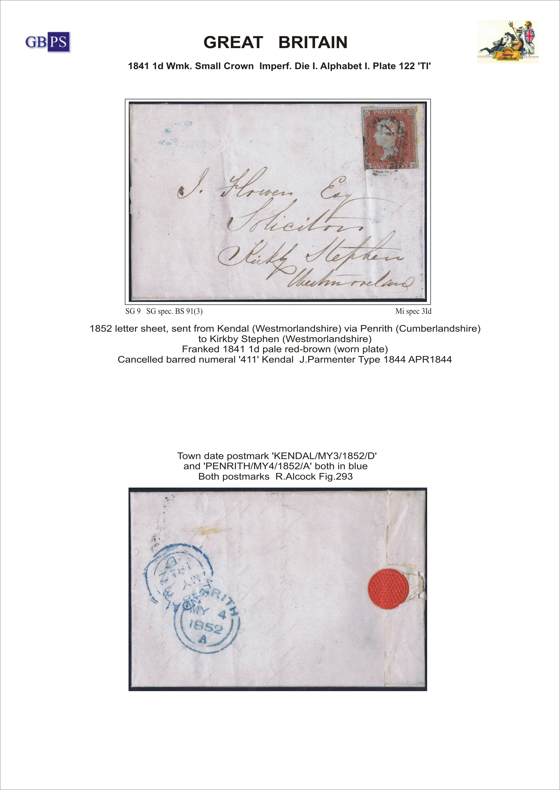 1841 1d PL122 (TI) BS 91(3) pale red-brown (worn) (411) AD115 D