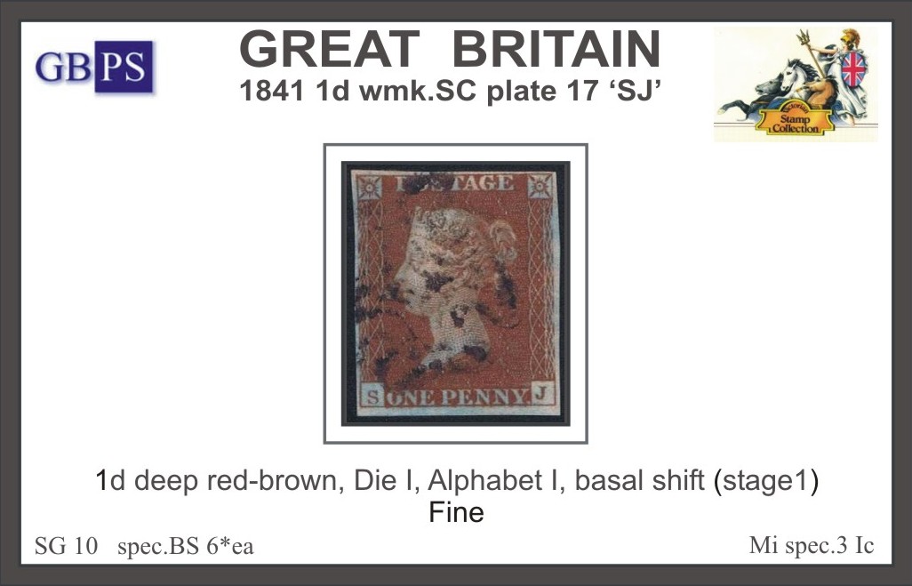 1841 1d PL17 (SJ) BS 6°ea deep red-brown (BS 1) ....