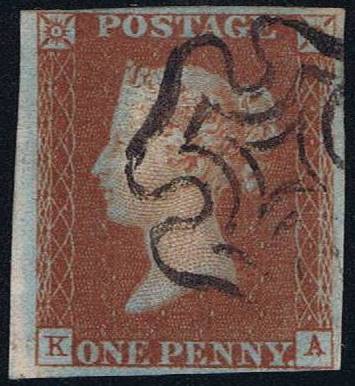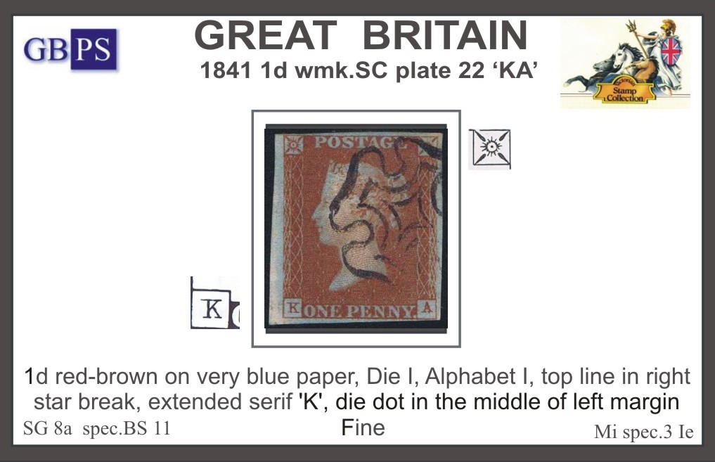 1841 1d PL22 (KA) BS 11 red-brown, very blue p.(NE Bk) ....