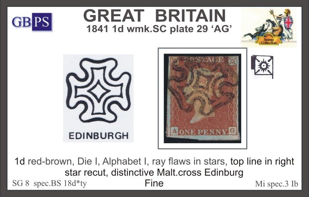 1841 1d PL29 (AG) BS 18d°ty red-brown (NNERc, MC'Edinburgh') ...