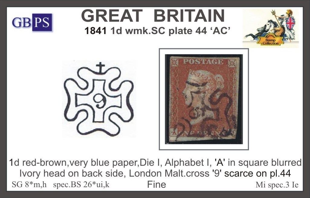 1841 1d PL44 (AC) BS 26°ui,k red-brown, very blue p. (Ivory head