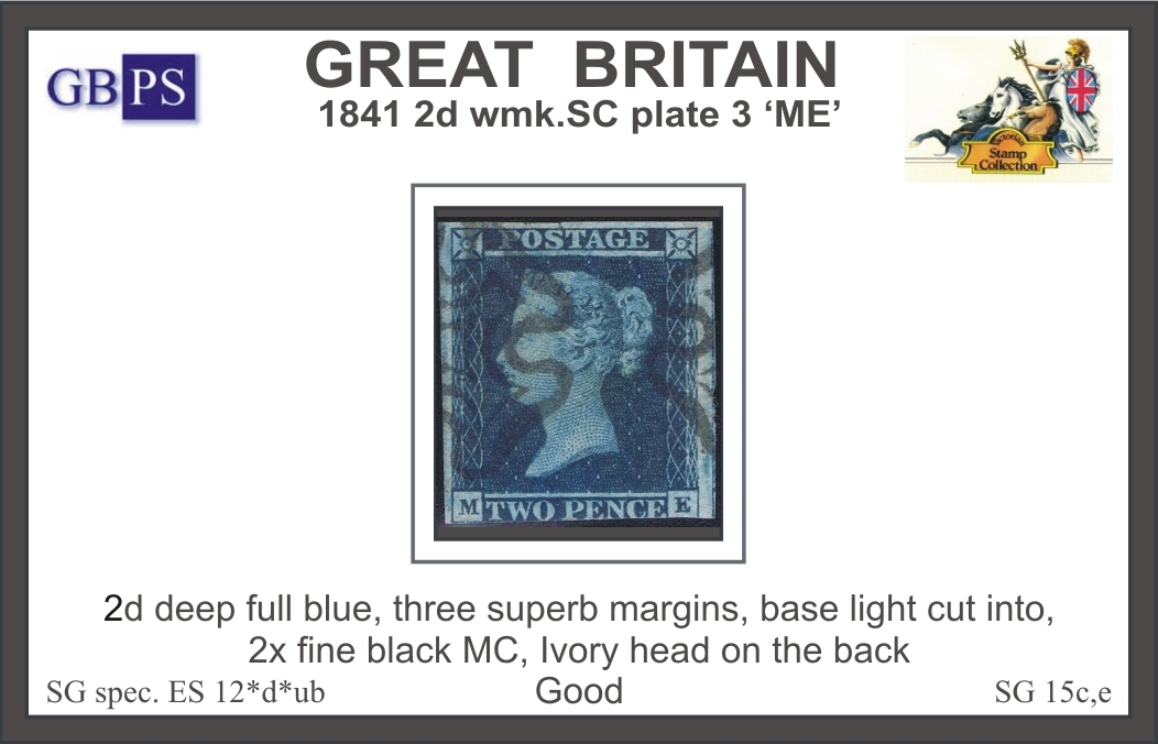 1841 2d PL 3 (ME) ES 12°d°ub deep full blue (Ivory head, black M