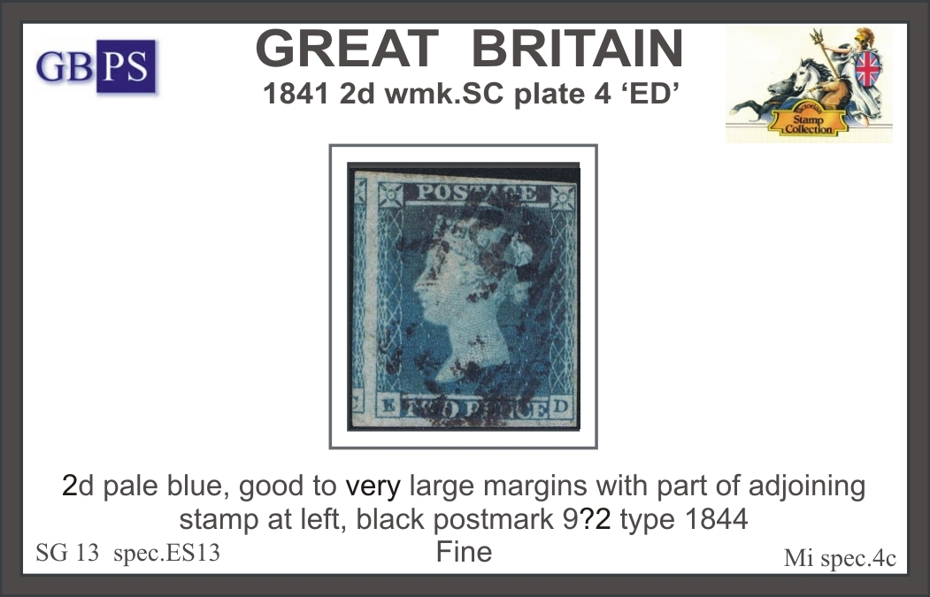 Úvodní stránka » Fotogalerie » 1 8 4 1 . 2 d . B L U E » 1841 2d PL 4 (ED) ES 13 pale blue