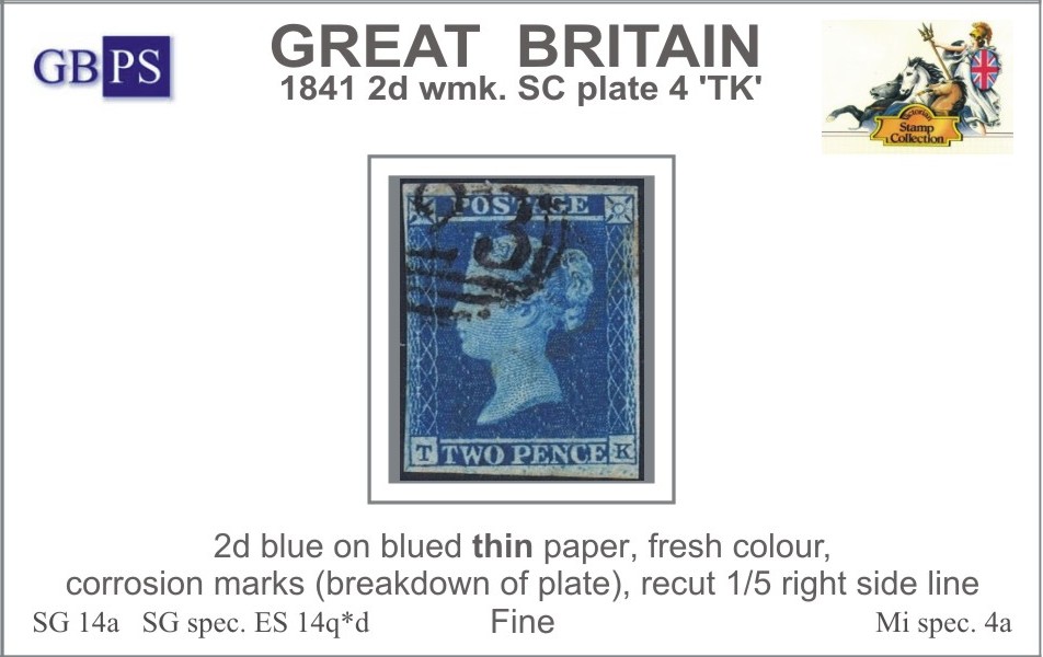 1841 2d PL4 (TK) ES 14q°d blue TNP (Lr1'5RRc) A2001