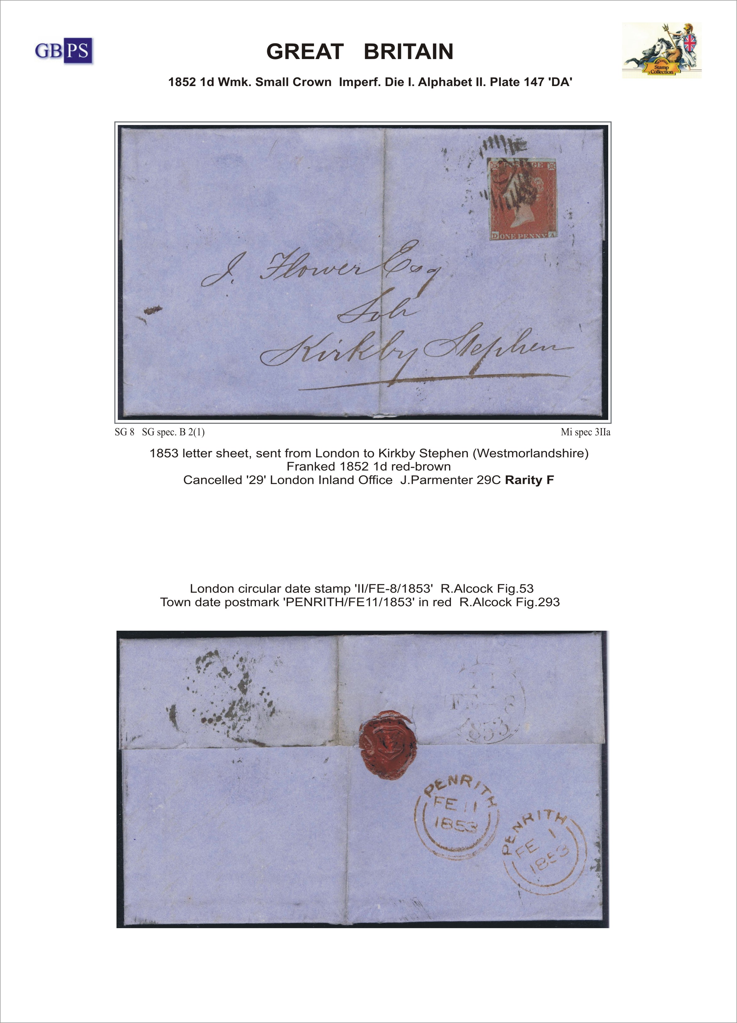 1852 1d PL147(DA) B 2(1) red-brown (29LIO) AD112