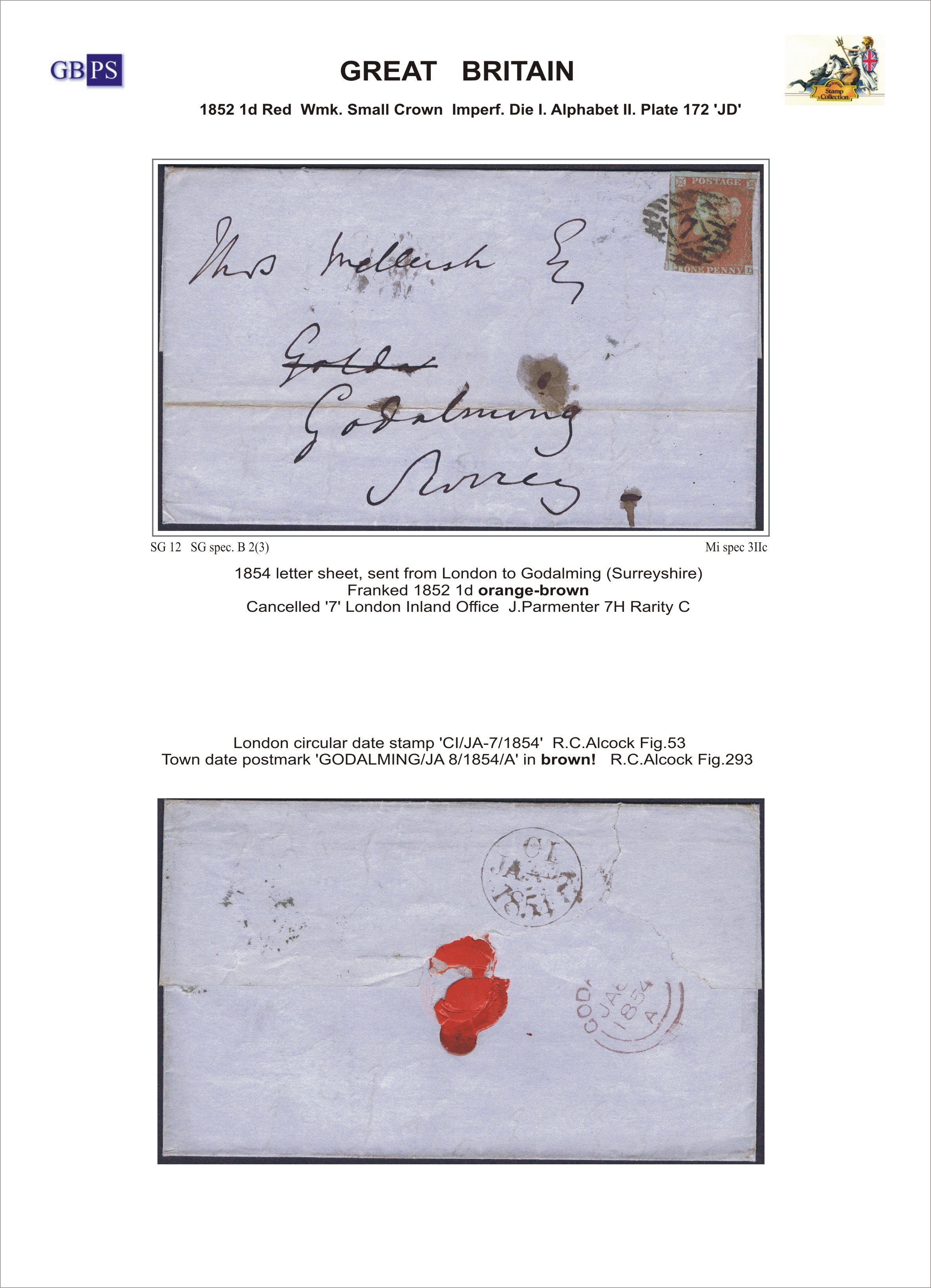 1852 1d PL172 (JD) B2(3) orange-brown (7LIO) AD119
