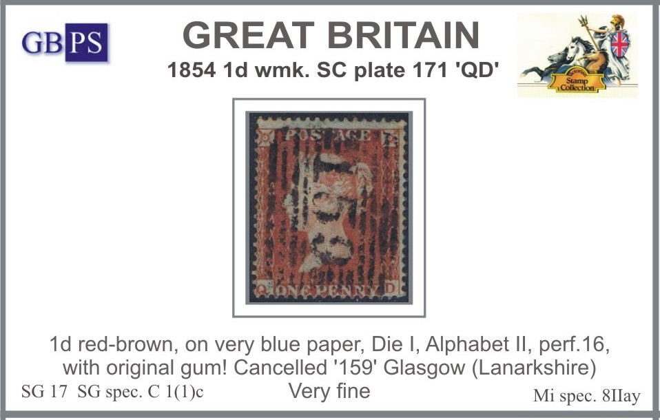 1854 1d PL171 (QD) C 1c(1) red-brown VBP, WSC, P16, DI, AII (159