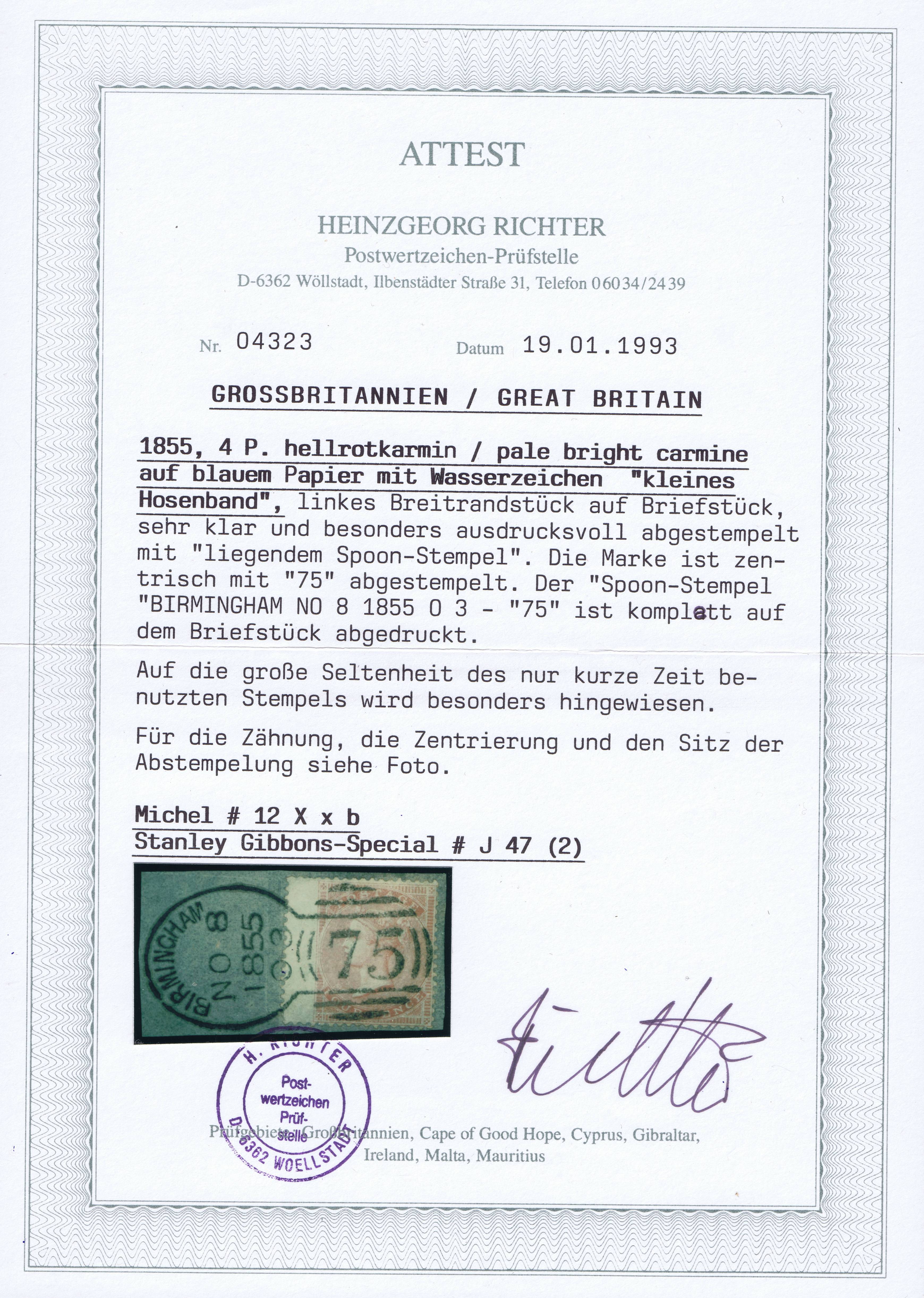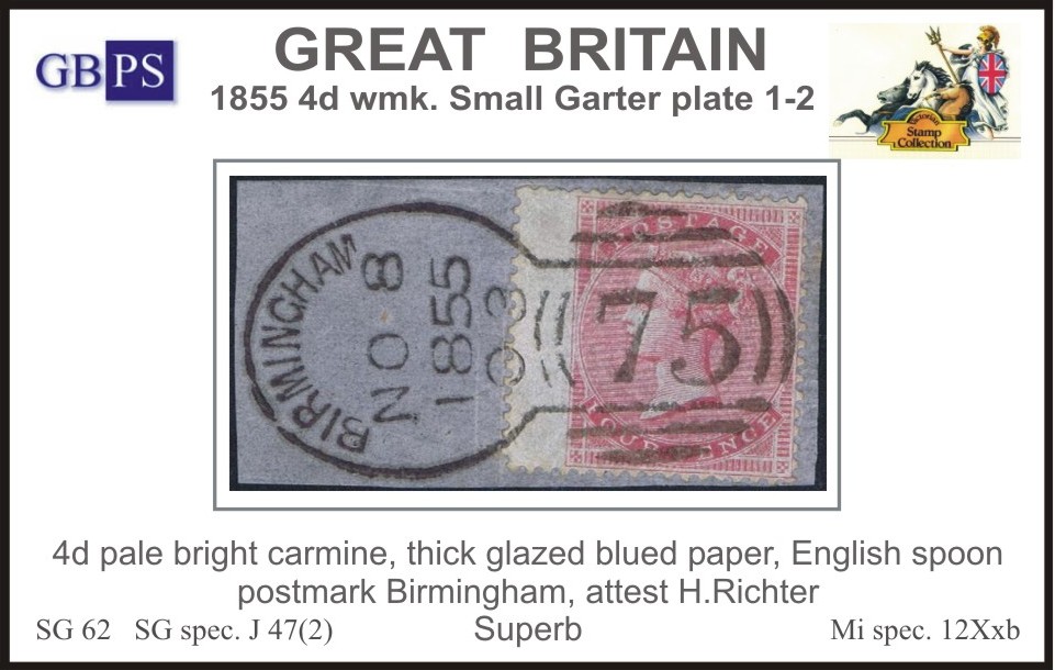 1855 4d PL1-2 J47(2) pale bright carmine wmk.SG TCGDBP (75) A10