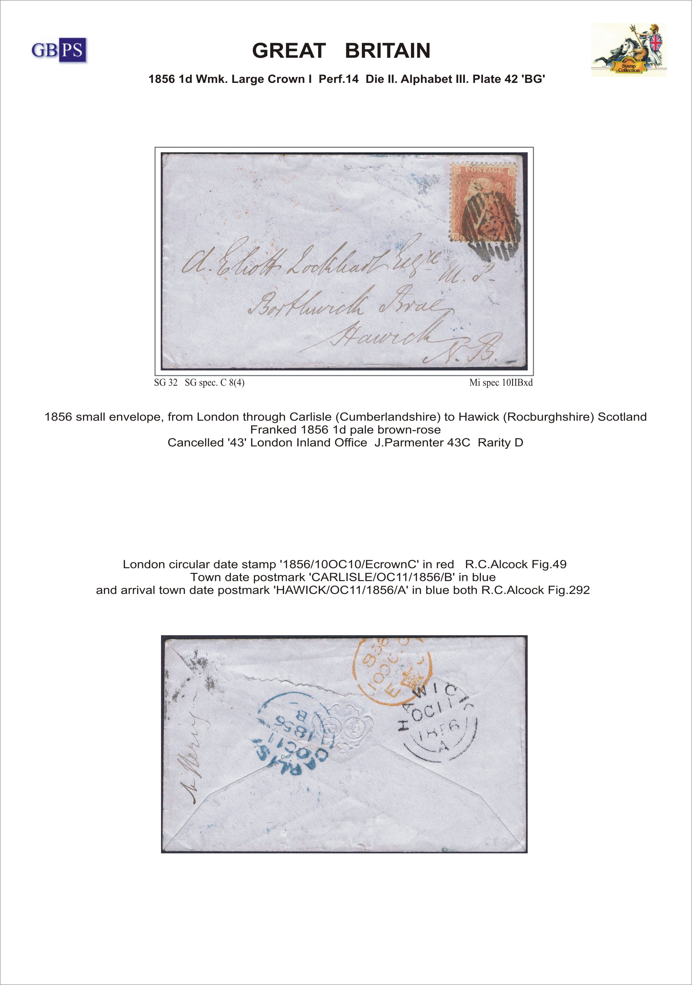 1856 1d PL42 (BG) C 8(4) pale brown-rose BP w.LC P14 DII AIII (4