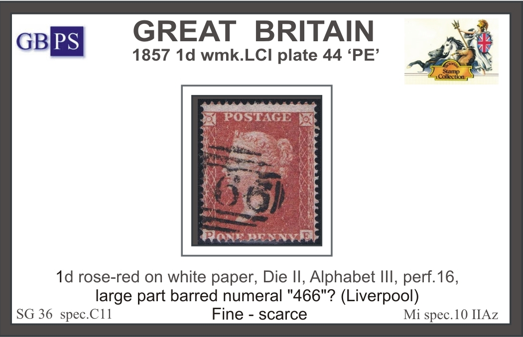 1857 1d PL44 (PE) C 11 rose-red (white paper)