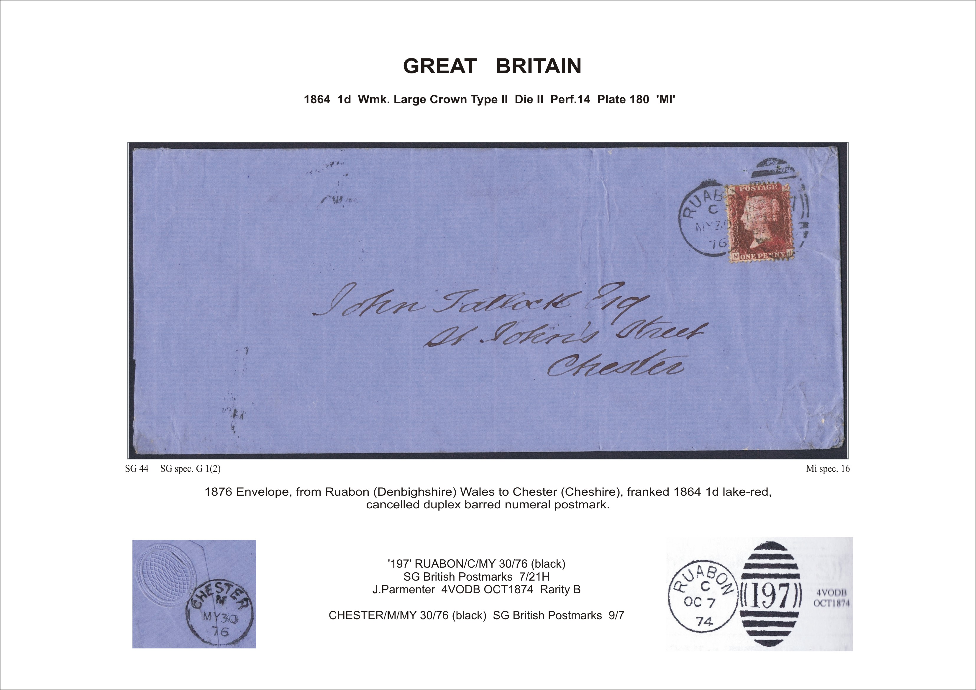 1864 1d PL180 (MI) G 1(2) lake-red wmk.II (197)