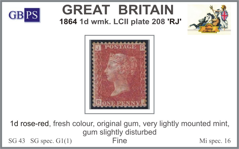 1864 1d PL208 (RJ) G 1(1) rose-red LM