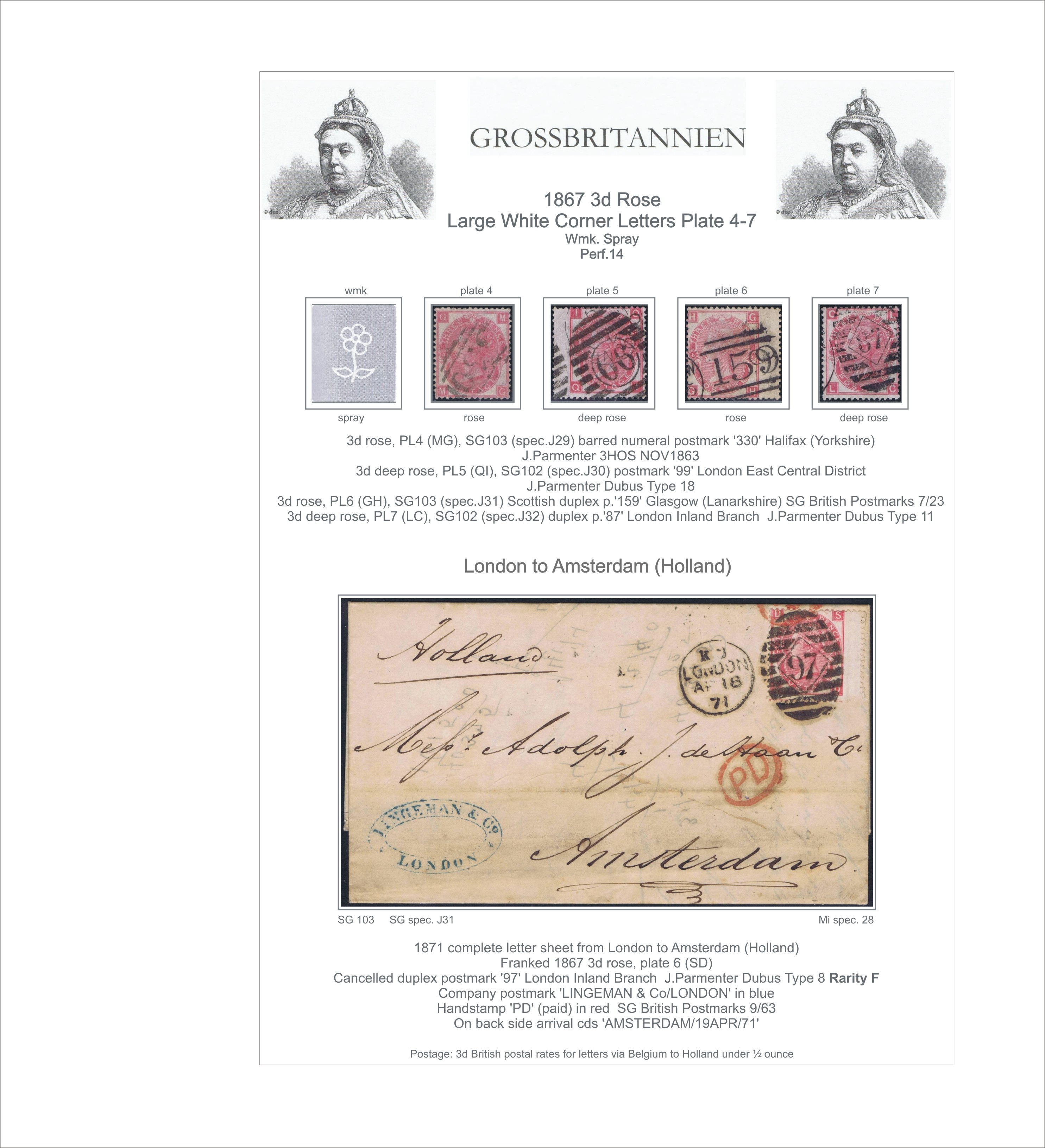 003S 1867 3d rose PL4-7 wmk.SR (4 stamps, letter)