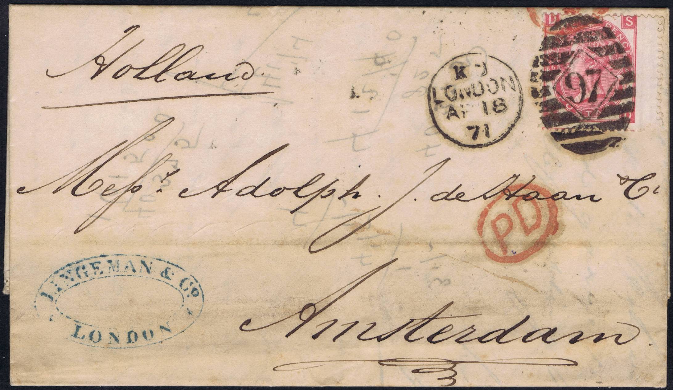 001S 1864 1d rose-red PL81 wmk.LCII (3 stamps, letter)