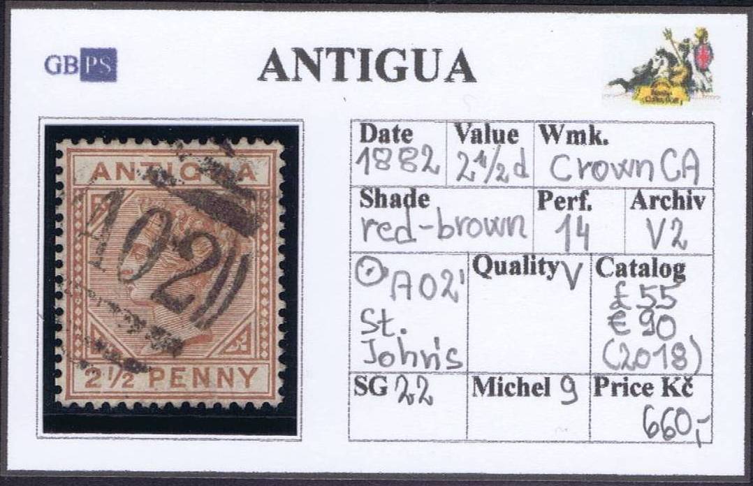 ANTIGUA 1882 SG 22 2,5d red-brown wmk.CA perf.14 (A02)