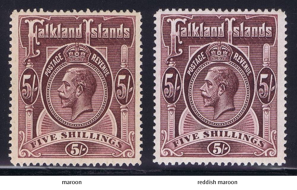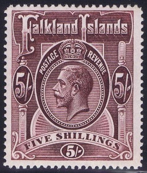 FALKLAND 1912-20 SG67b 5s reddish maroon WMCCA P14 UM A1