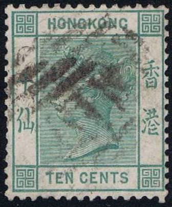 HONG KONG 1882 SG 37a 10c green wmk.CA P14 .....