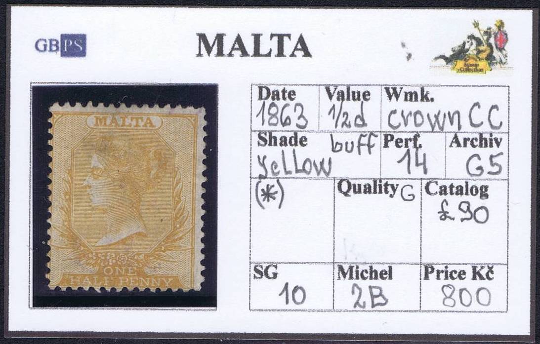 MALTA 1863 SG 10 0,5d yellow buff wmk.CC perf.14 UN ....