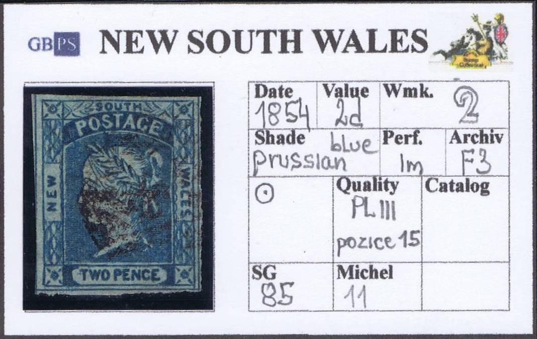 NSW 1854 SG85 2d prussian blue W2 (PLIII. 15) A1