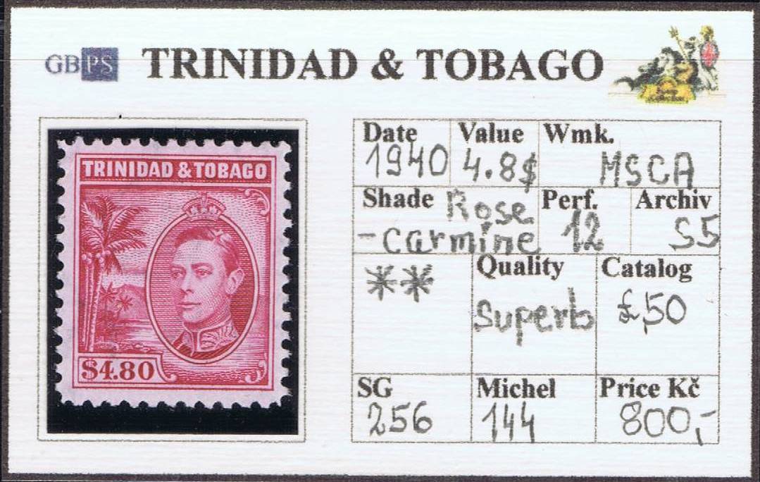 TRINIDAD TOBAGO 1940 SG256 4,8 rose-carmine, wmk.MSCA perf.12 UM