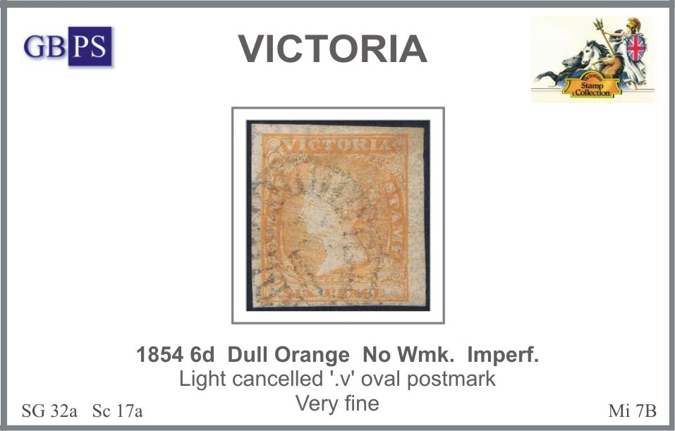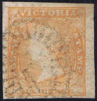 VICTORIA 1854 SG 32a 6d dull orange no wmk. imperf. (.V)