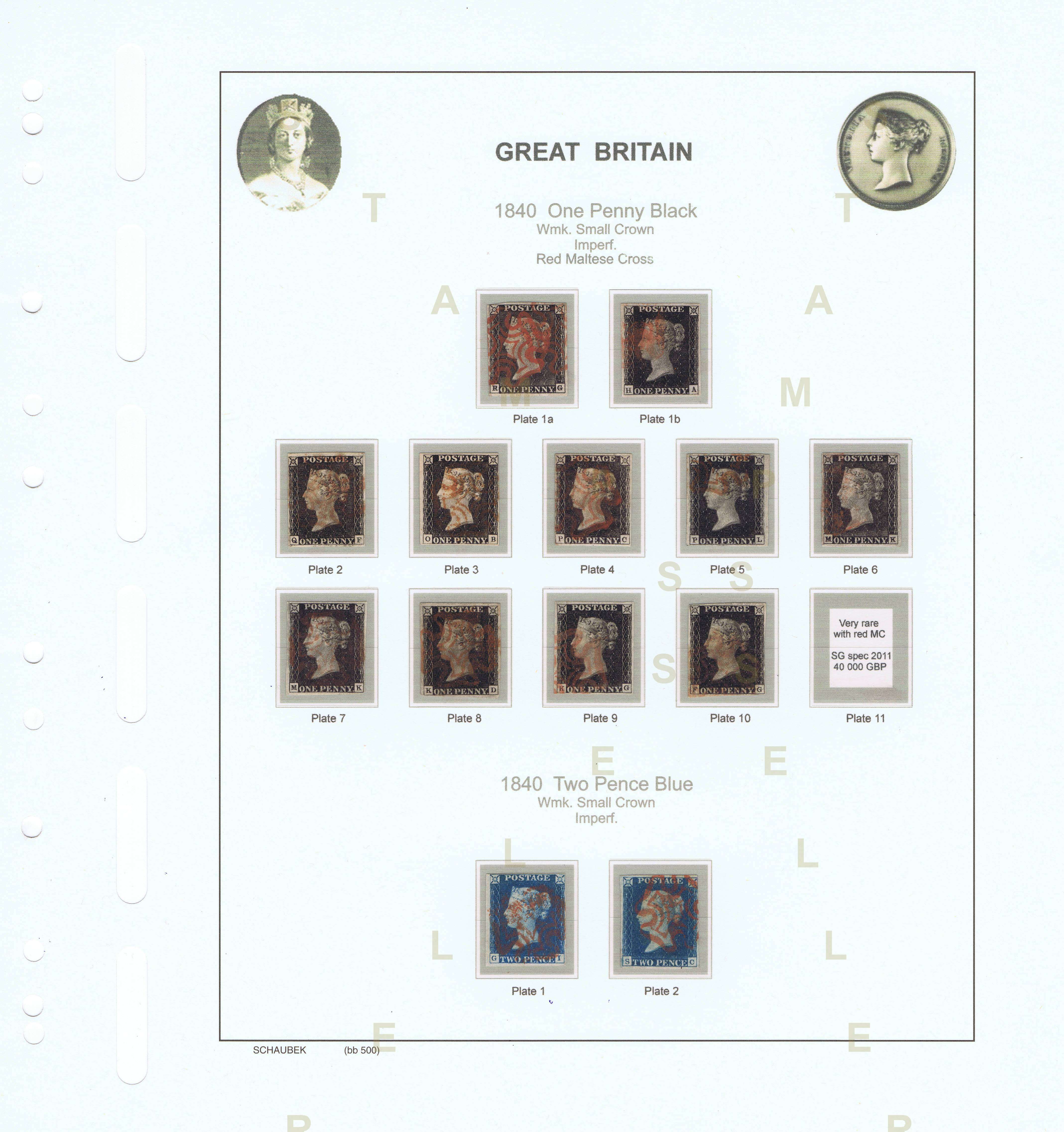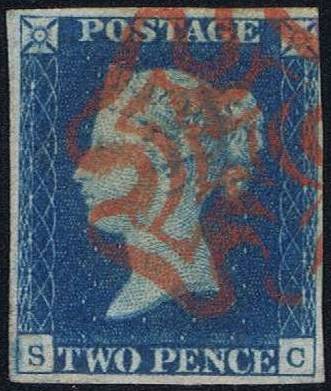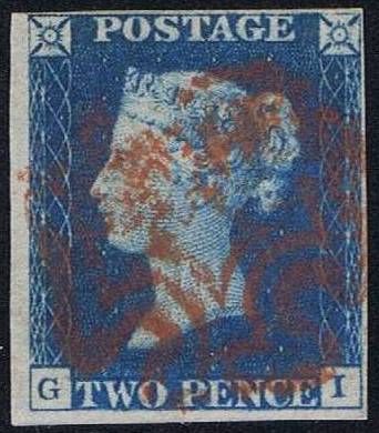 001D 1840 1d black PL 1-11, 2d blue PL 1-2 (red MC) PRODÁNO