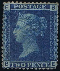 001W 1858 2d PL9 (BE, IJ) G2 blue (wmk.I,II) UN PRODÁNO
