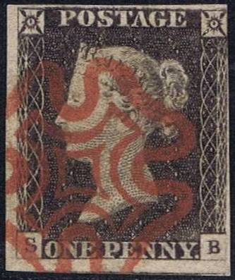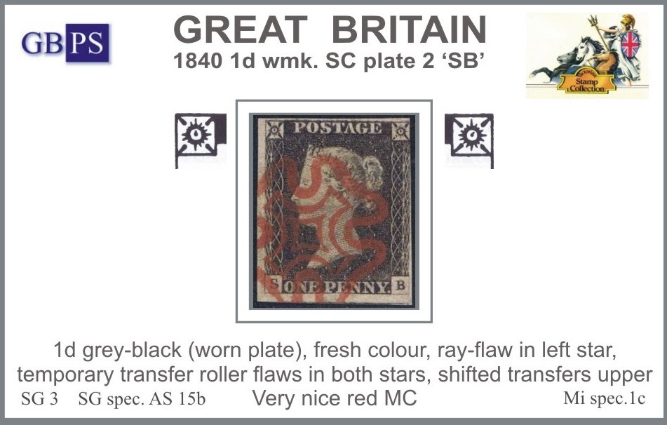 1840 1d PL2 (SB) AS15b grey-black (worn) (UBS3) A306