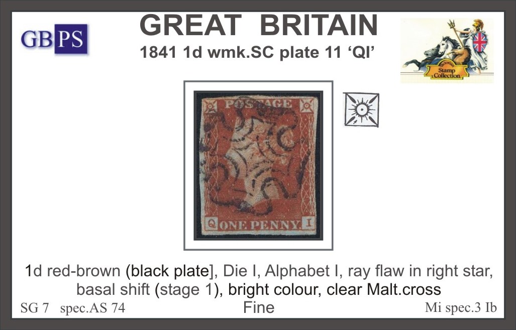 1841 1d PL11 (QI) AS 74 red-brown (black plate) PRODÁNO