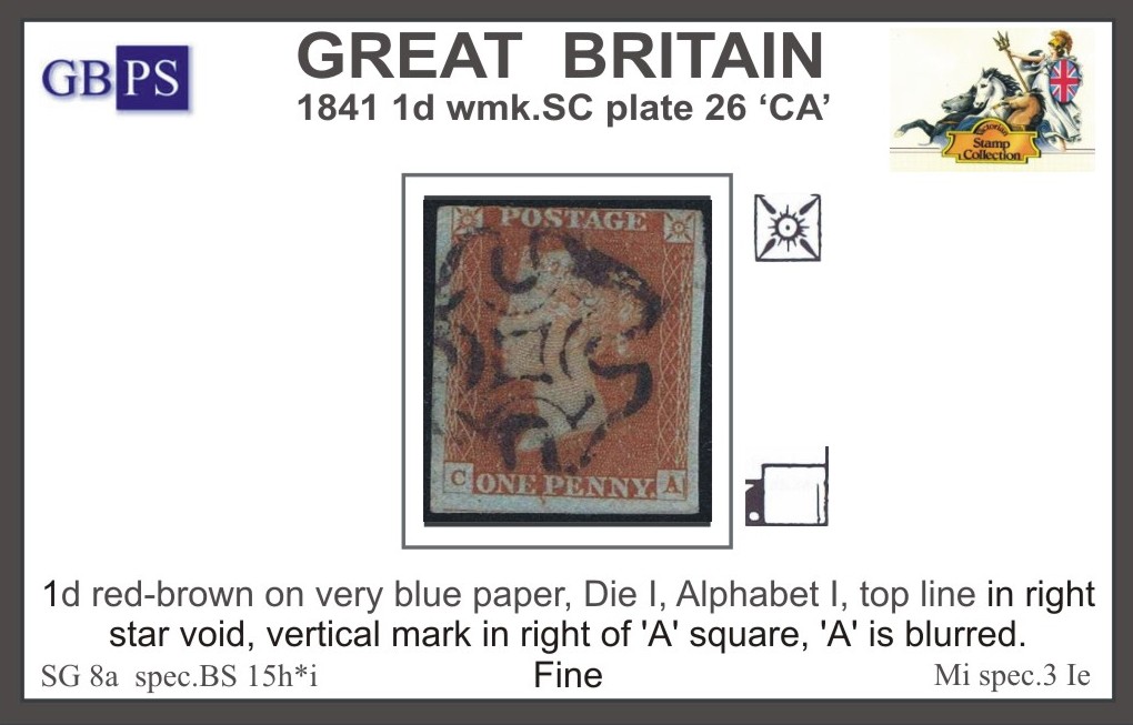 1841 1d PL26 (CA) BS 15h(2) red-brown, very blue paper PRODÁNO
