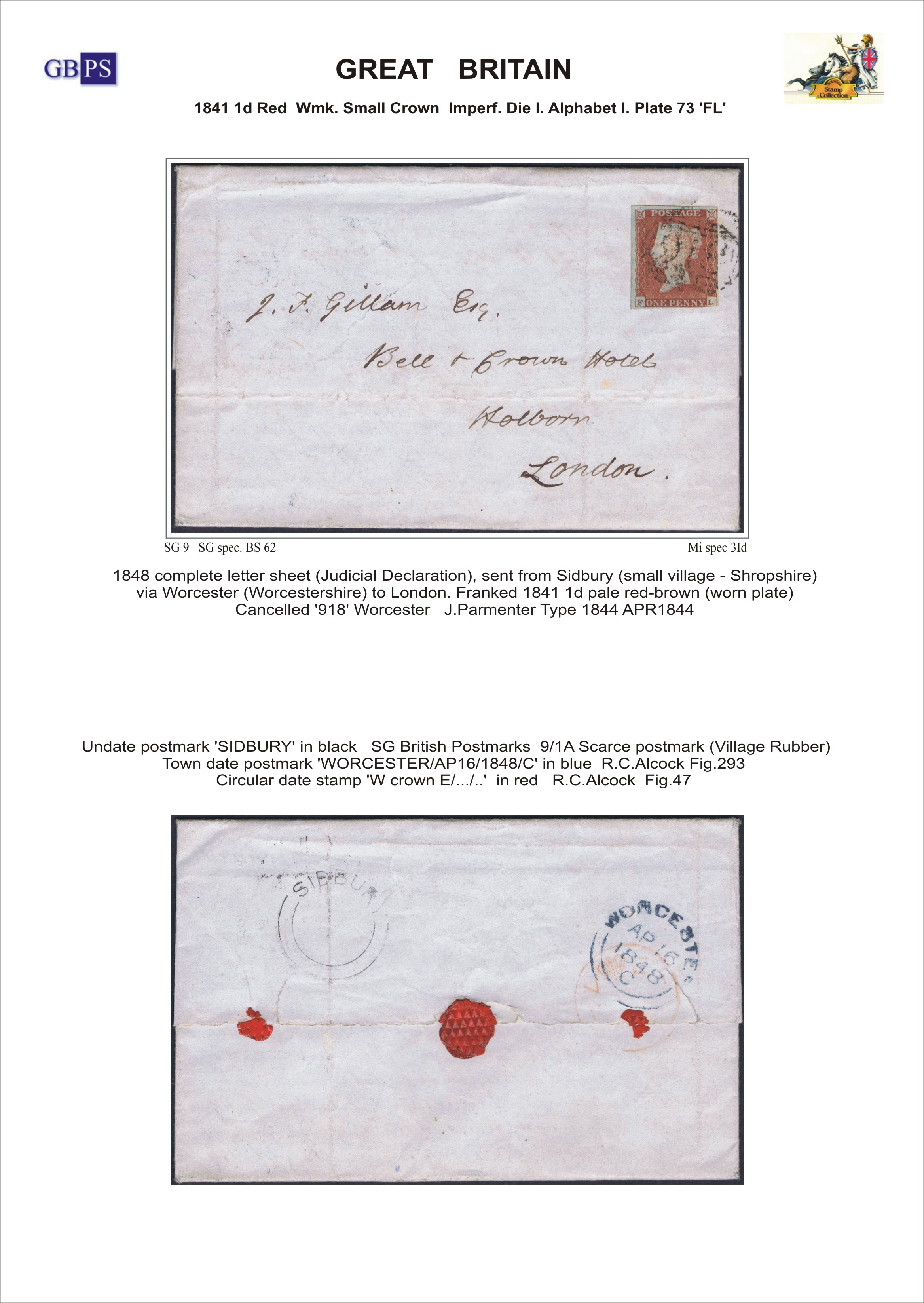 1841 1d PL73 (FL) BS62(3) pale red-brown (worn,918)AD104 PRODÁNO