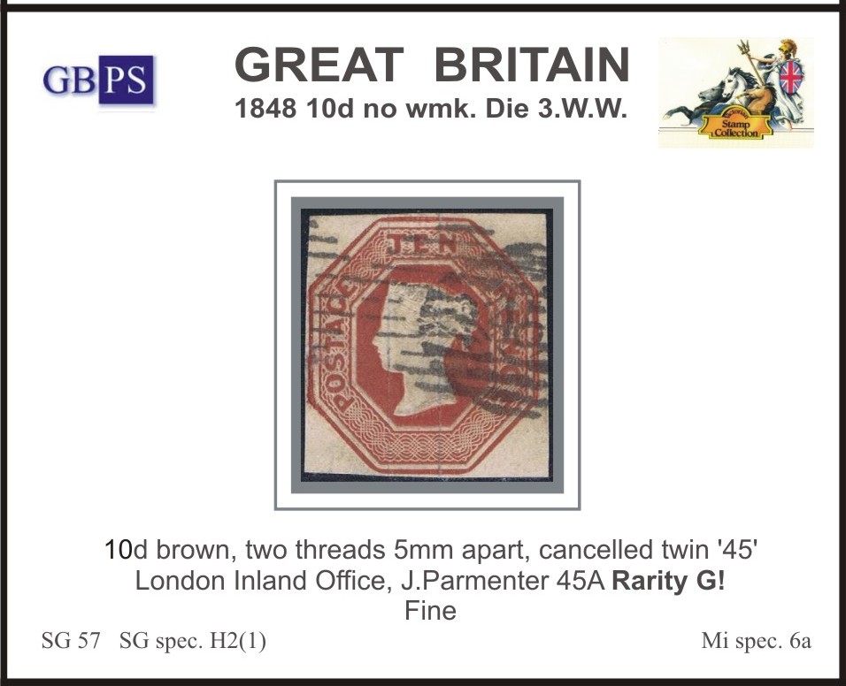 1848 10d brown H 2(1) (2T 5mm) Die 3ww (45LIO) A12 PRODÁNO