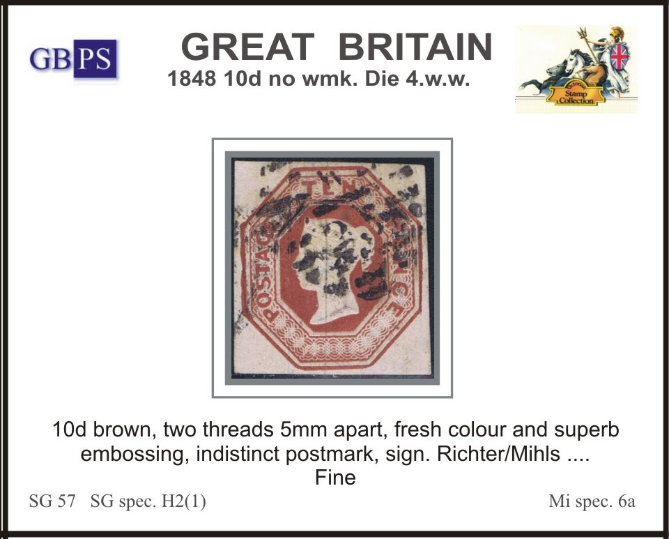 1848 10d brown H 2(1) (2T 5mm) Die 4ww A16
