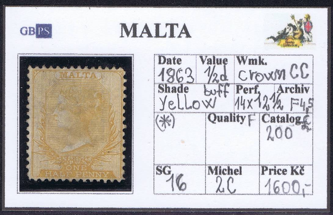MALTA 1863 SG 16 0,5d yellow buff wmk.CC perf.14x12,5 UN