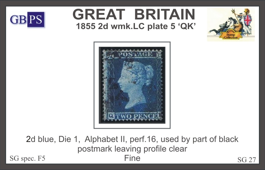 1855 2d PL5 (QK) F 5 blue wmk.LC P16 PRODANO