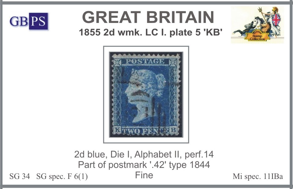 1855 2d PL5 (KB) F 6(1) blue WLC P14 DI AII (..2) A10 PRODÁNO