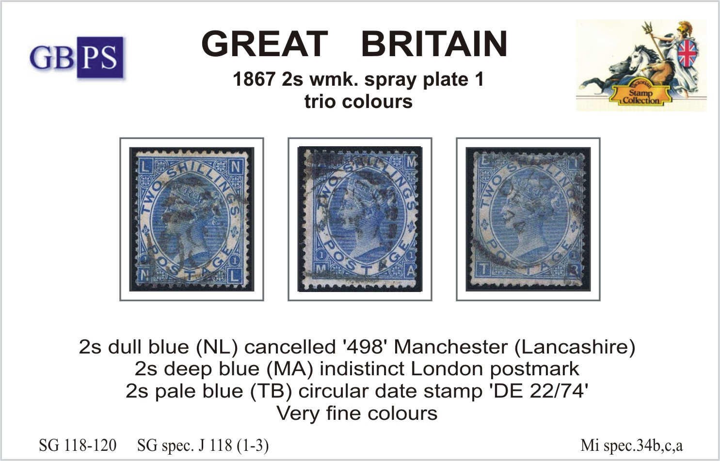 002B 1867 2s PL1 (NL,MA,TB) SG 118-120 blue wmk.spray REZERVACE