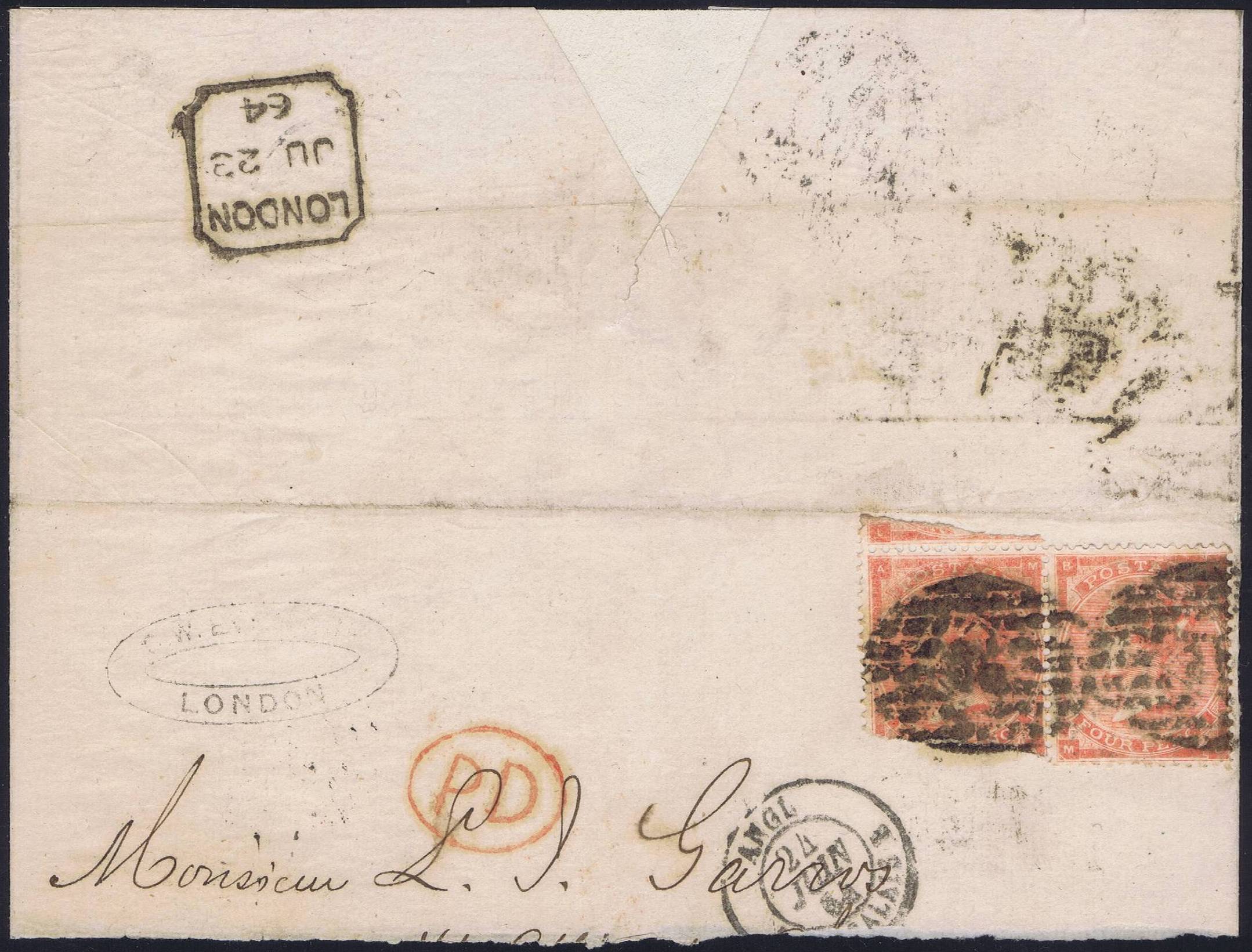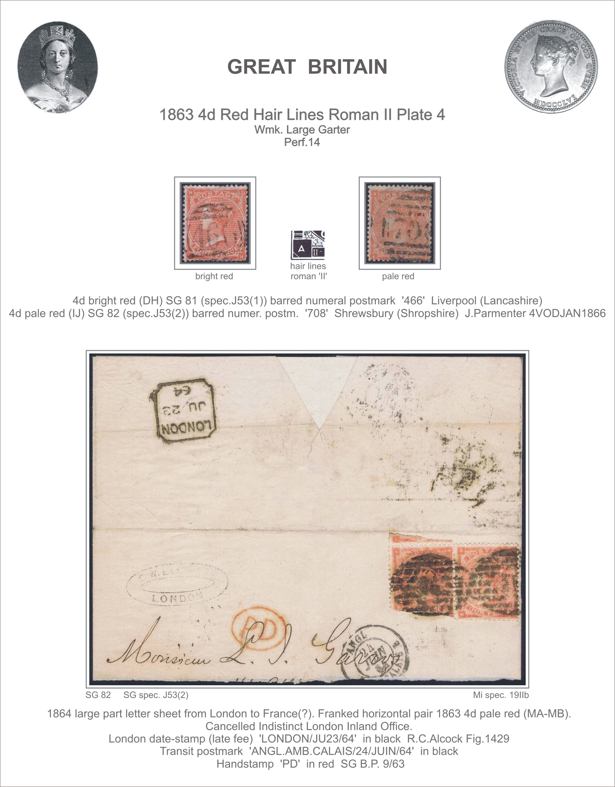 001S 1863 4d red PL4 wmk.LG (2 shades and letter) PRODÁNO