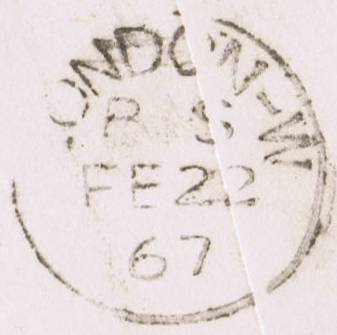 001S 1864 1d rose-red PL81 wmk.LCII (3 stamps, letter)