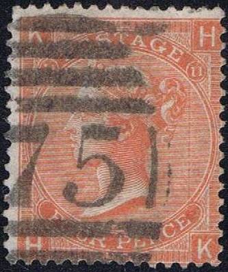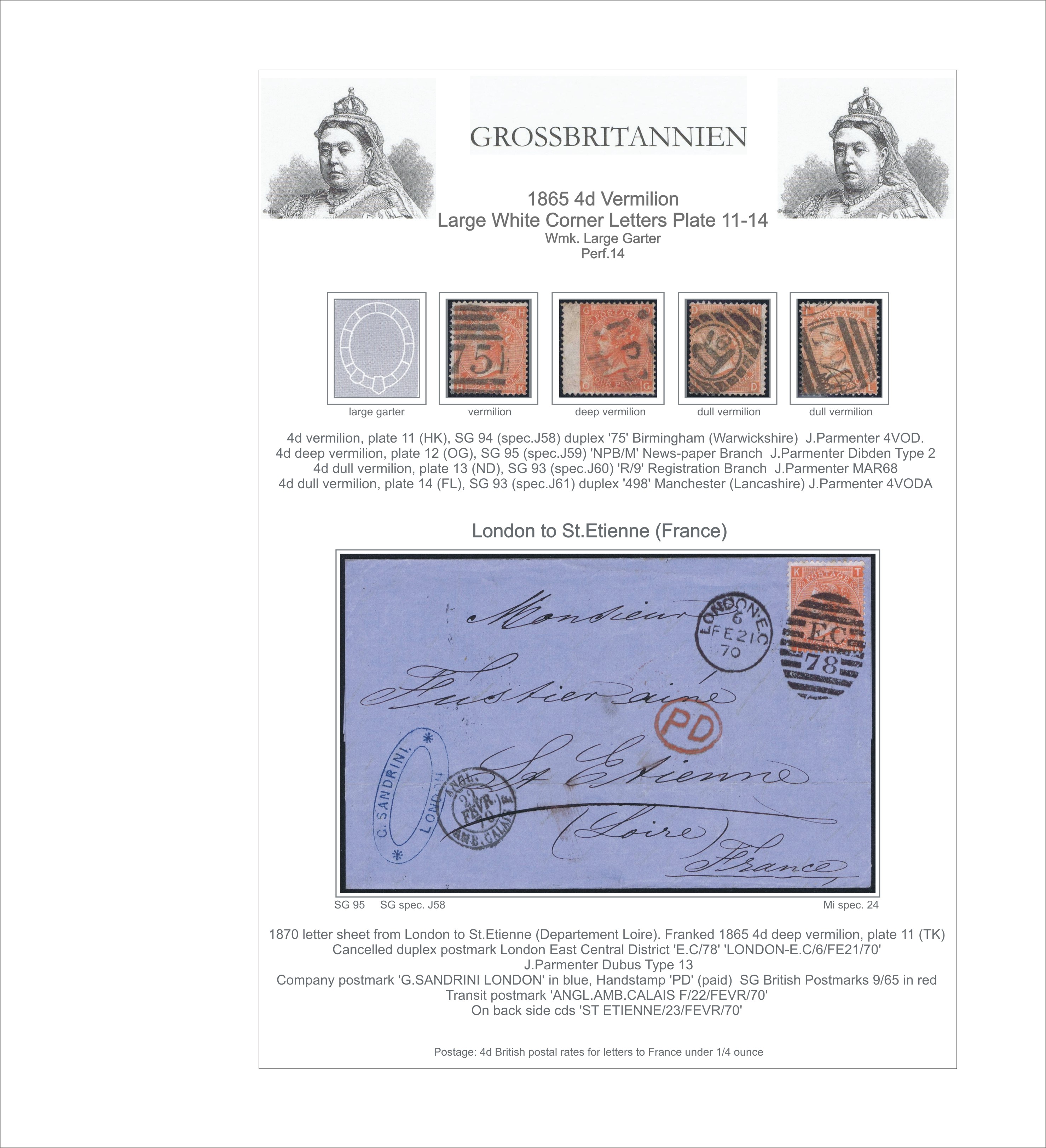 002S 1865 4d vermilion PL11-14 wmk.LG (4 stamps, letter)