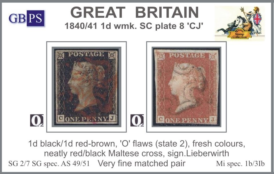M 1840-41 1d PL8 (CJ) AS49'51 black'red A352'B81 PRODÁNO