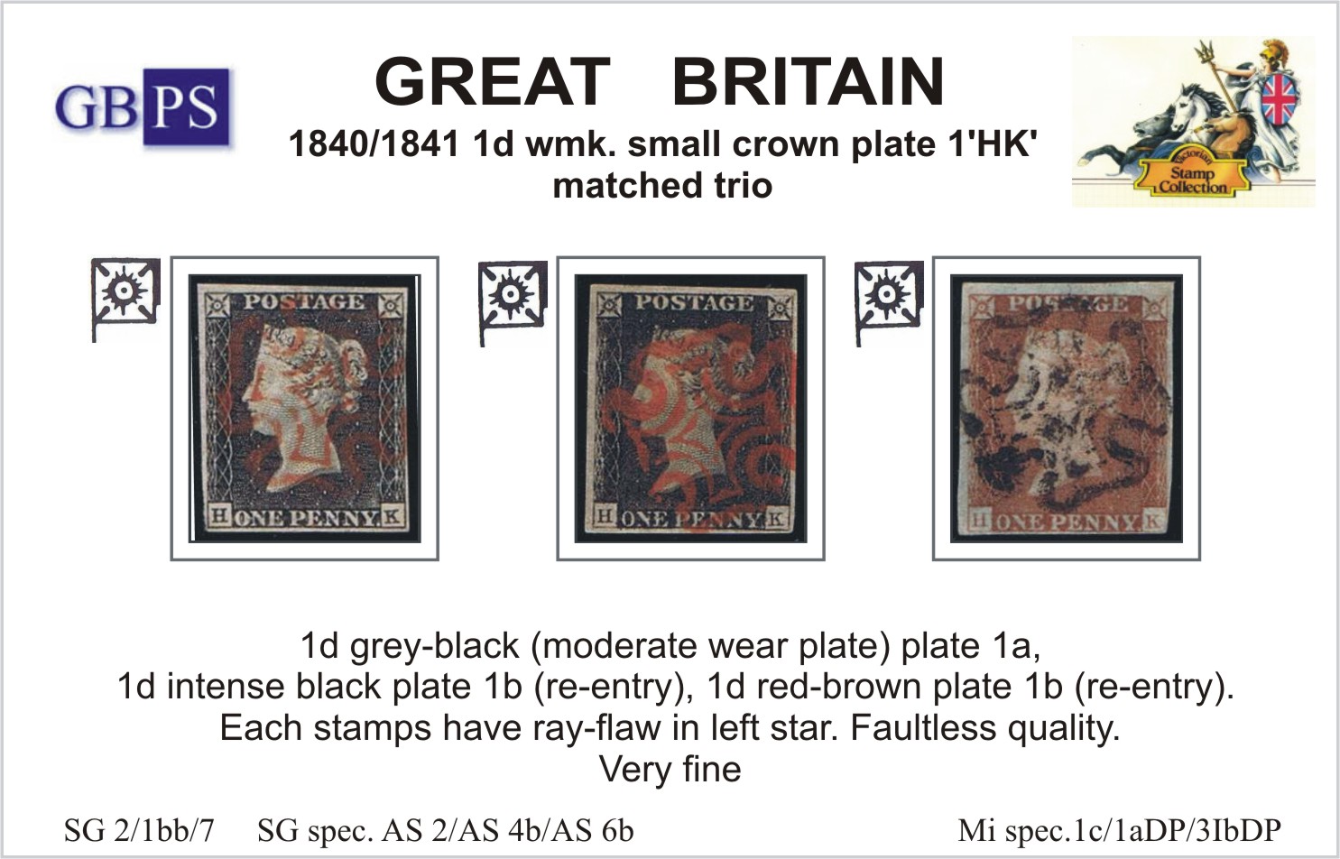 001M 1840/1841 1d PL1 (HK) AS2, AS4b, AS7b (matched trio)PRODÁNO