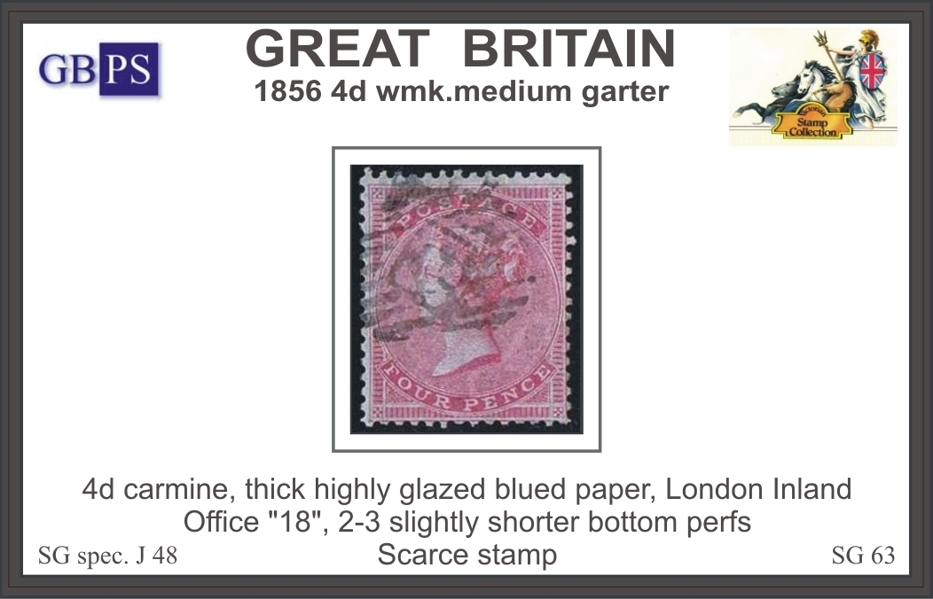 1856 4d wmk.MG J 48 carmine (thick glazed blued p.)
