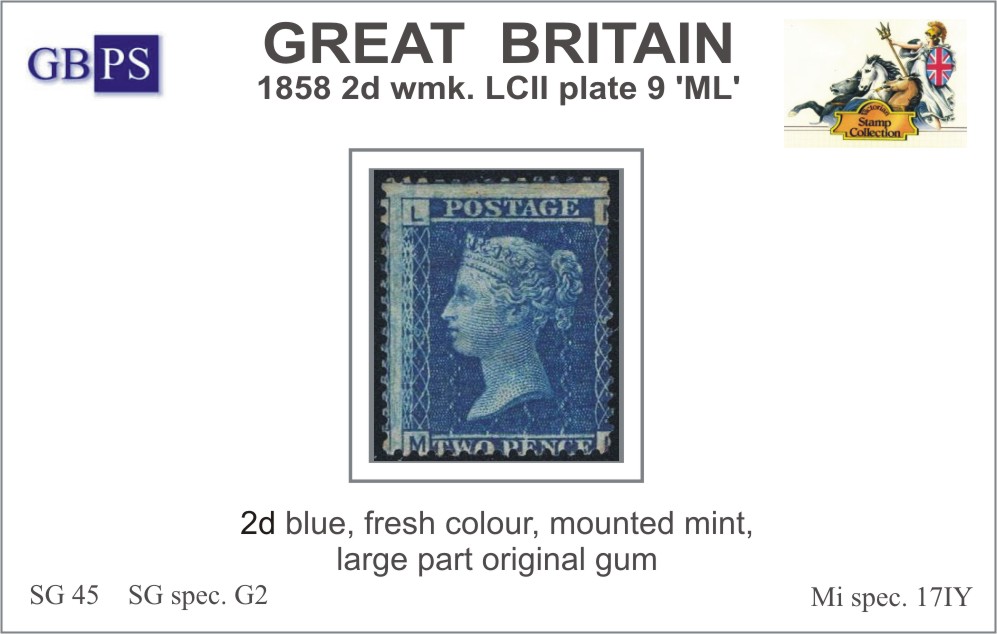 1858 2d PL9 (ML) G 2 blue wmk.II HM aukro prodáno
