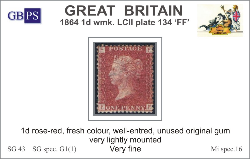 1864 1d PL134 (FF) G 1(1) rose-red LM PRODÁNO