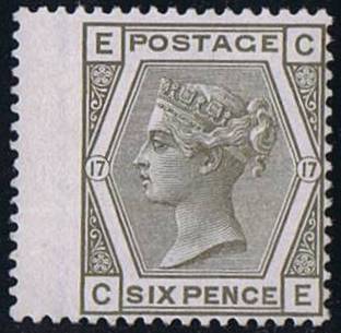 1880 6d PL17 (CE) J87 grey wmk.SR UM A1 PRODÁNO